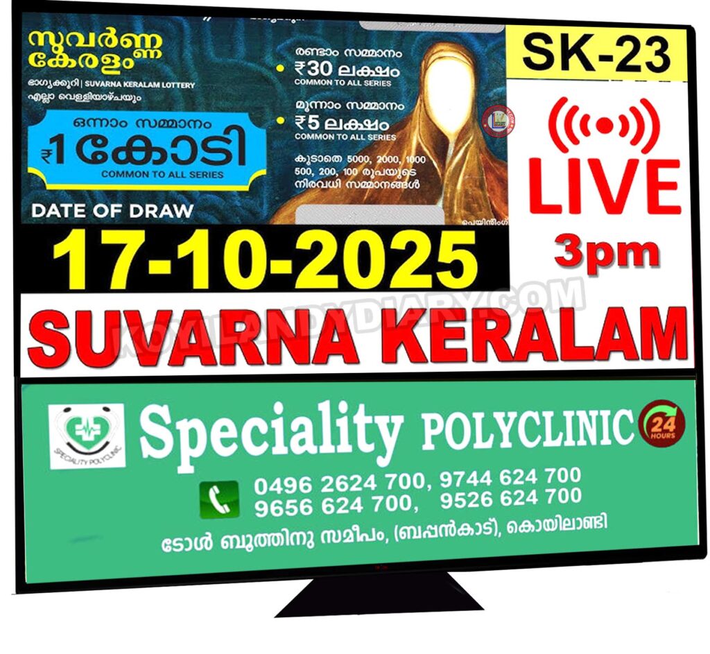 ഒരു കോടി നേടാം; സുവർണ കേരളം ലോട്ടറി SK 23 നറുക്കെടുപ്പ് ഇന്ന്